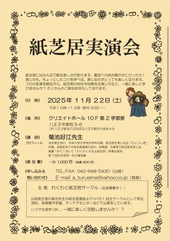 学術・文化・芸術・スポーツ公開日:2025年10月24日紙芝居実演会開催日:2025年11月22日(土)