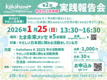 2026年1月25日(日)に『kokohana×やさしい日本語 実践報告会2025』を実施します。