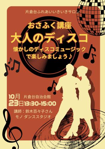 公開日:2025年10月24日活動レポート【おさふく講座】2025/10/23「大人のディスコ~懐かしのディスコミュージックを楽しみましょう~」を開催!誰もが耳にしたことのあるディスコミュージック。昔ディスコに通っていた人もそうでない人も、行きたくても...