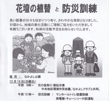 環境の保全公開日:2025年10月26日明神町なかよし公園花壇の花の抜き取りと防災訓練2025年10月19日